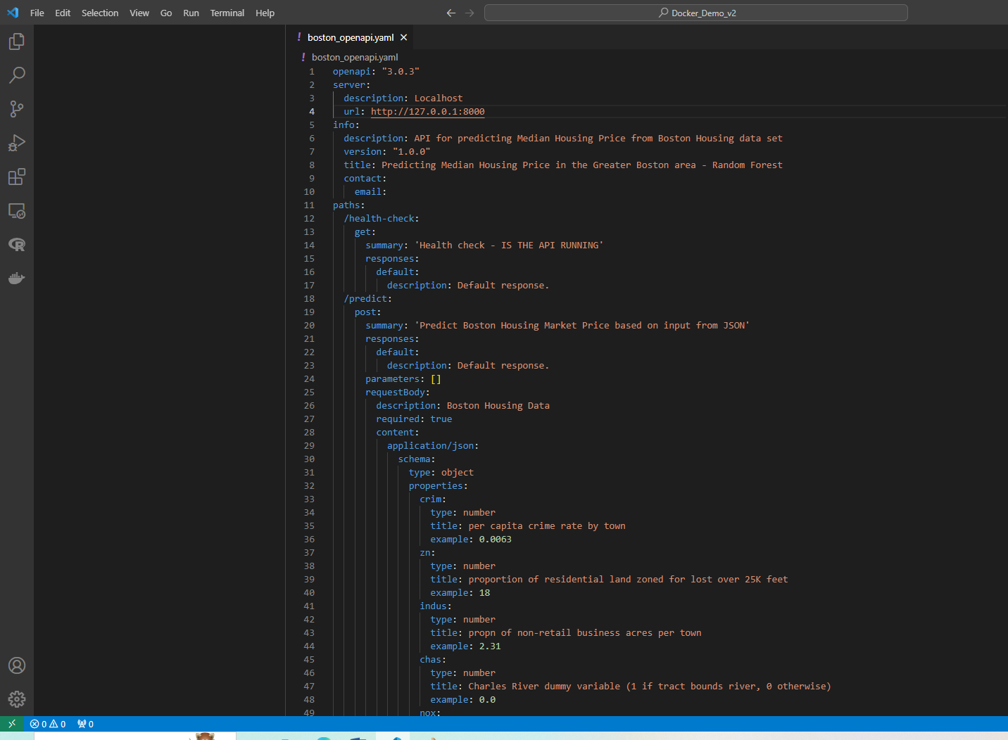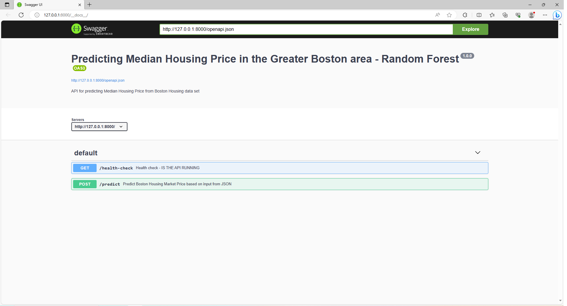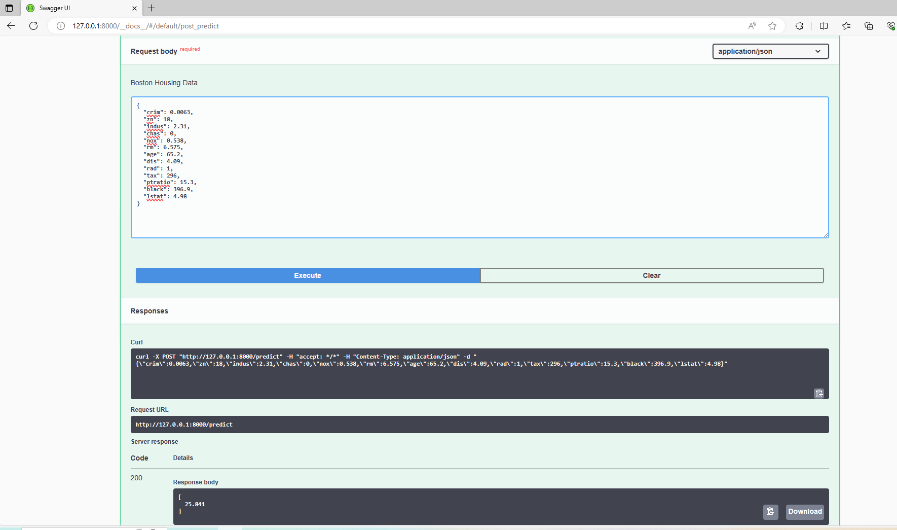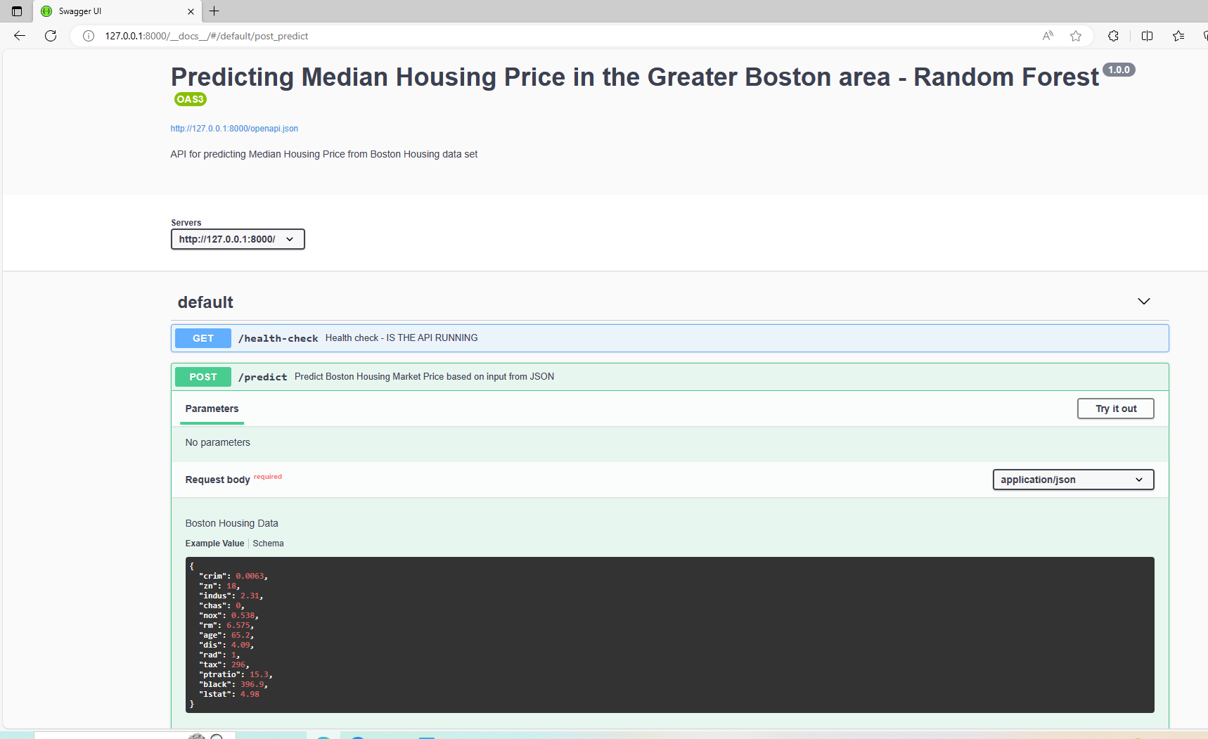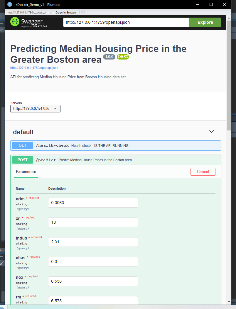 –@post /predict which calls the model and predicts the Median Housing price on the new data. They also accept parameters as evident from the code.