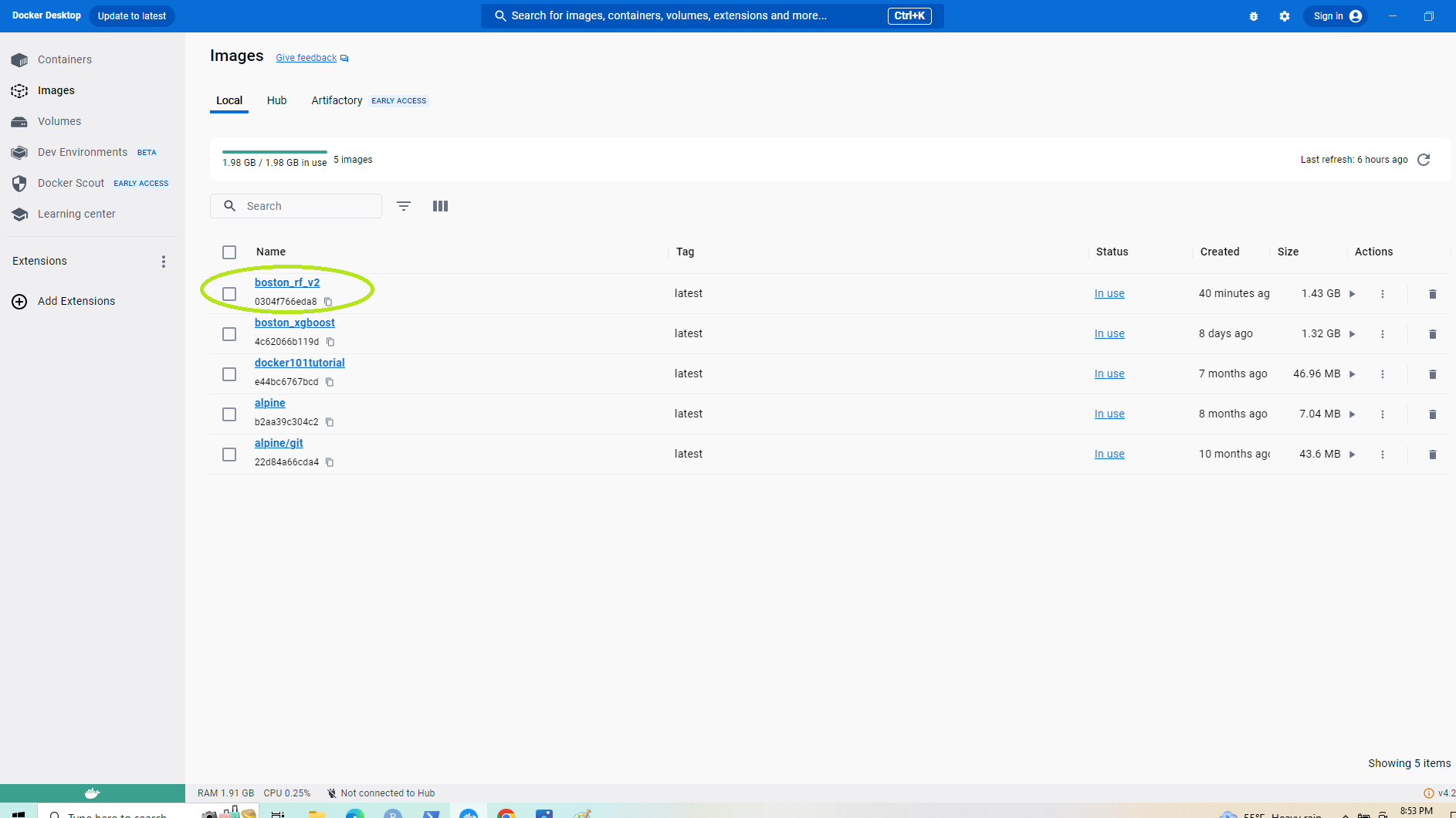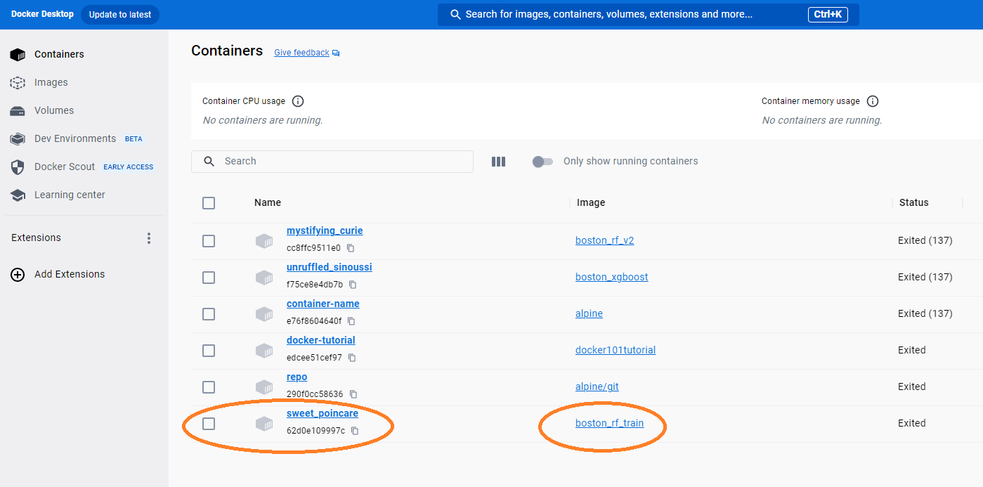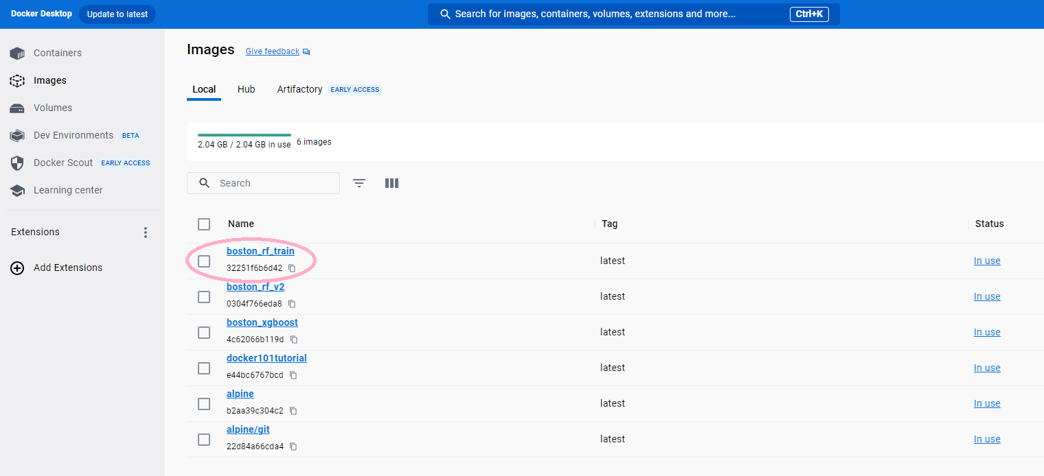 Figure 21: Docker Image & Container for Random Forest Training Model
