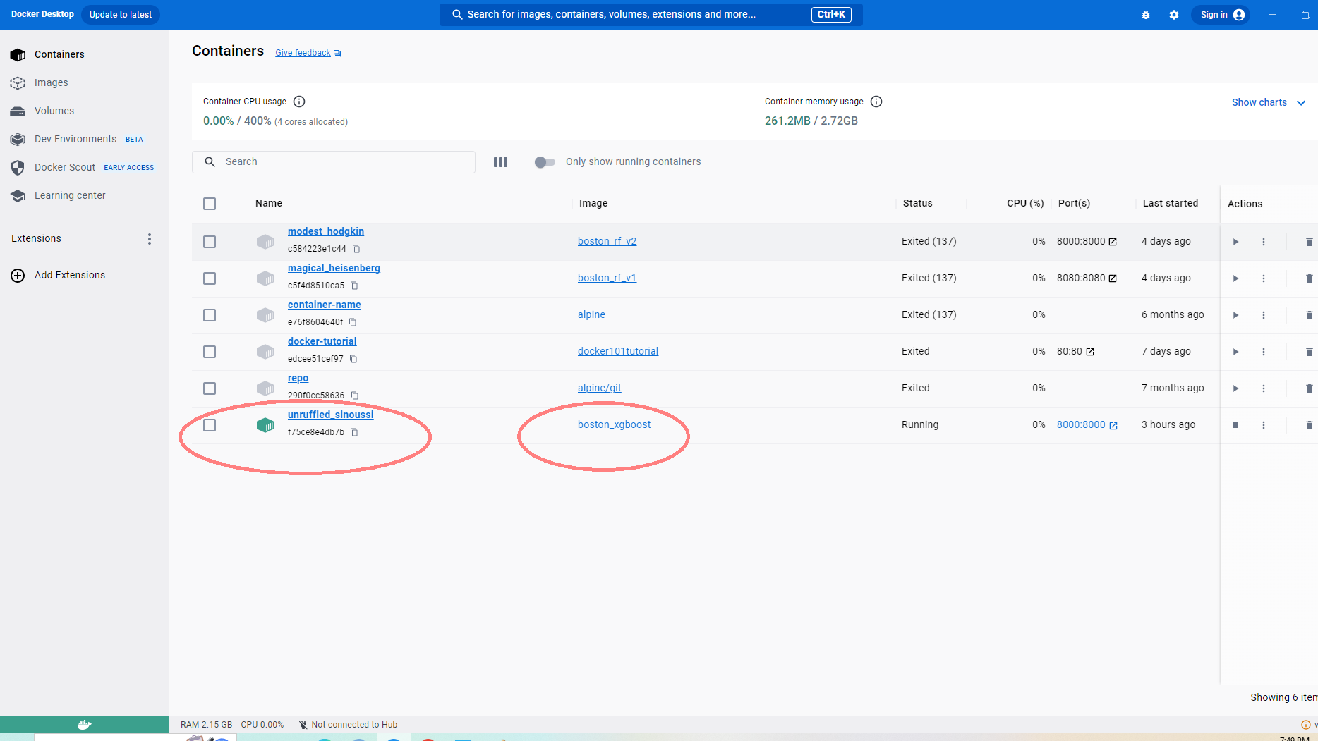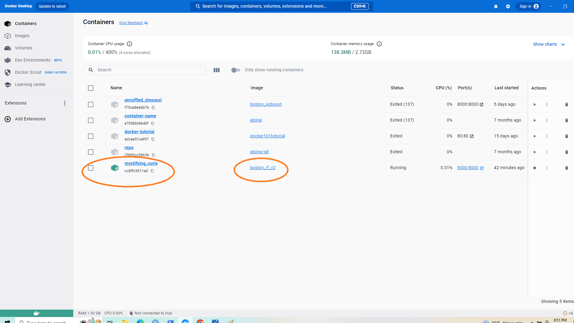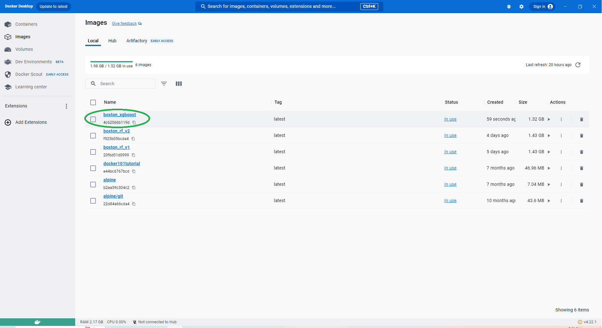 Figure 21: Docker Image & Container for Random Forest Training Model
