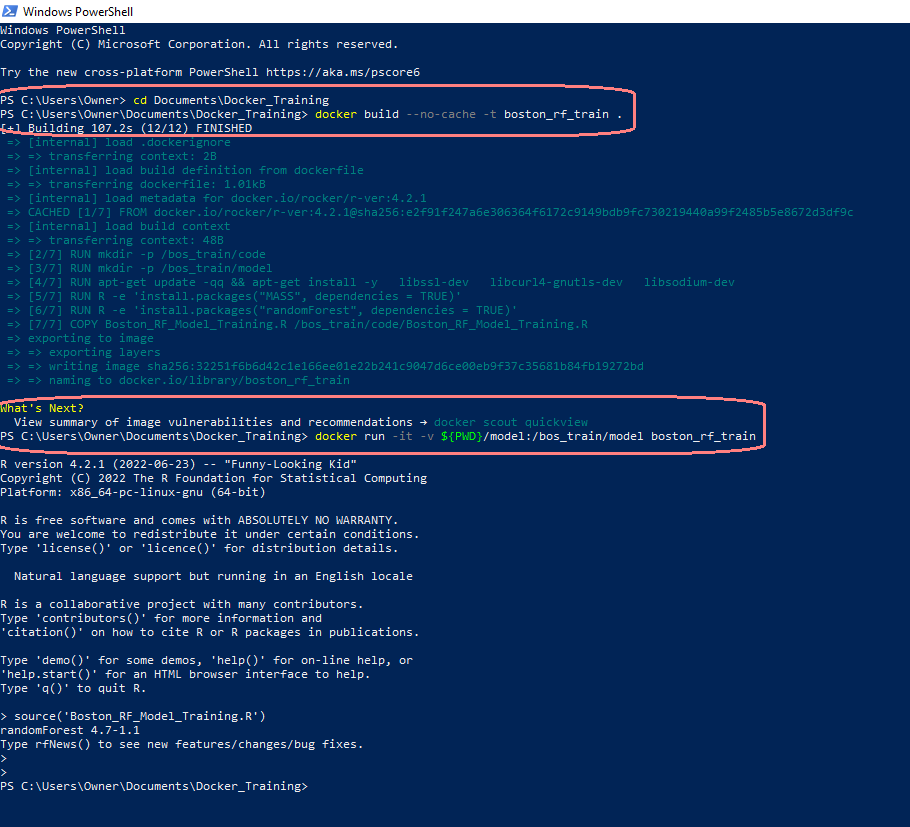 Figure 20: Docker Commands for Training Model - PowerShell Terminal