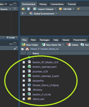 Figure 18: List of files and R Script to be placed in container for Training Model Random Forest