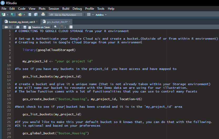 • The GoogleCloudStorageR library enables one to interact with the storage and acts as a wrapper for Google Storage API.