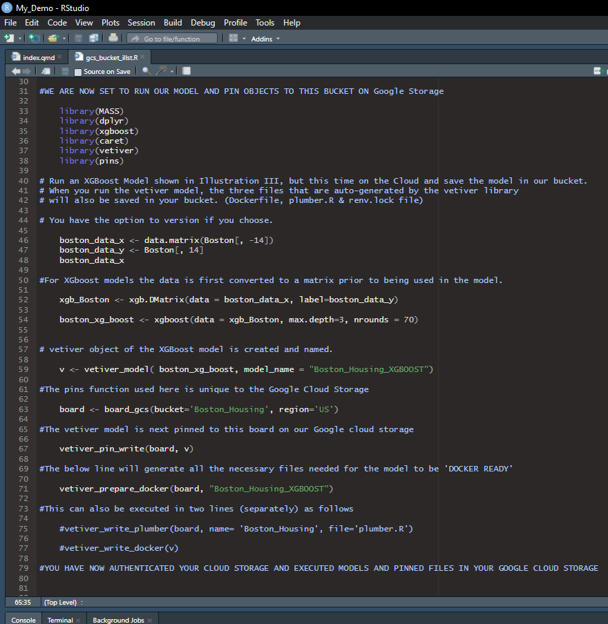 Below is an example of creating a bucket in Google Storage from the R ecosystem and using the bucket as a board to pin our model in the XGBoost model illustration shown above.