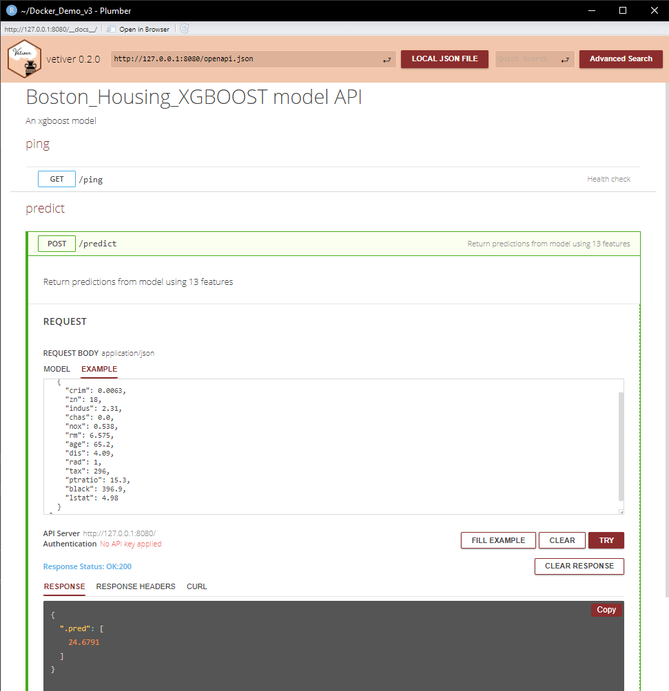 Figure 15 - Vetiver Model API execution - RapiDoc - XGBoost