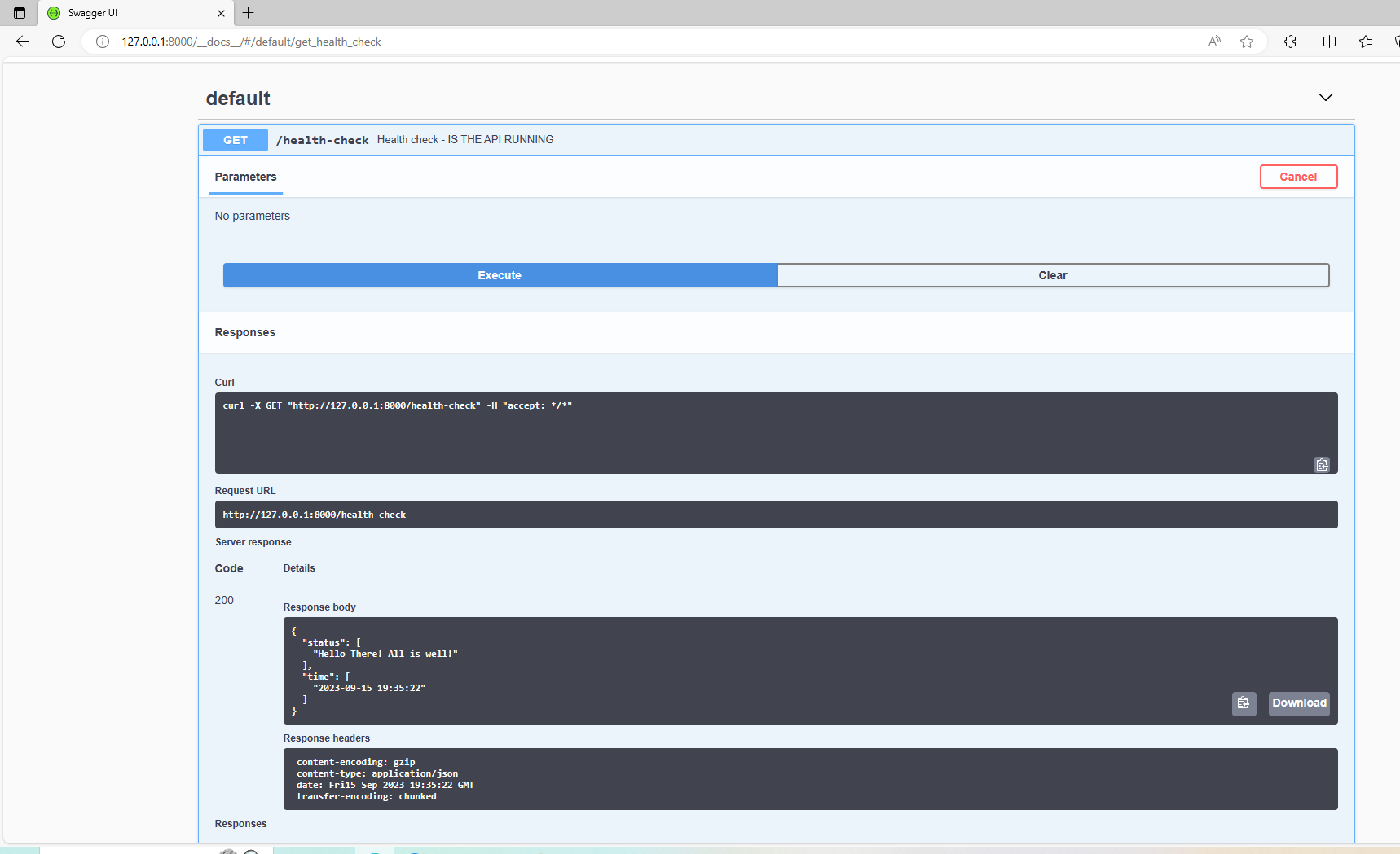 #* Health check - IS THE API RUNNING